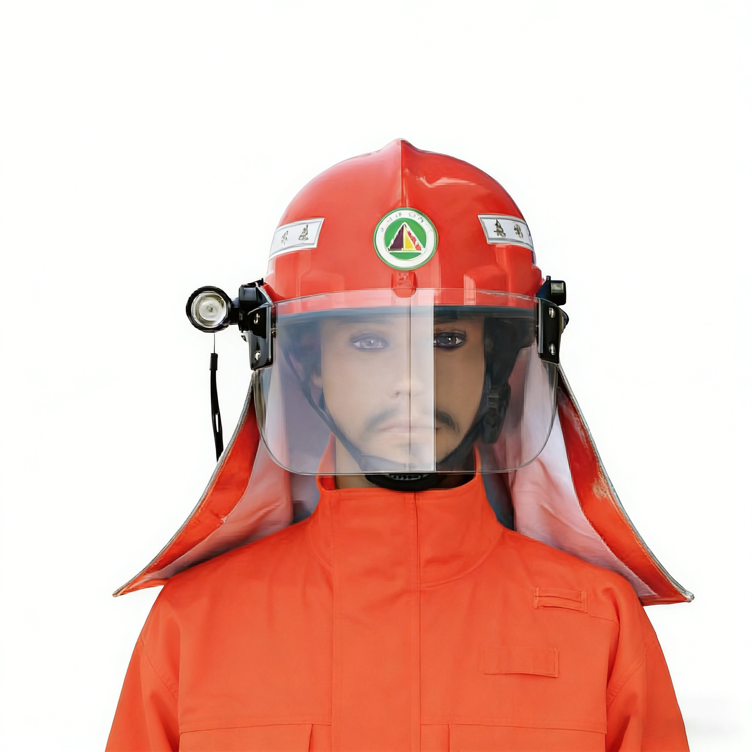 材质:高温进口塑料盔体、披肩阻燃铝箔